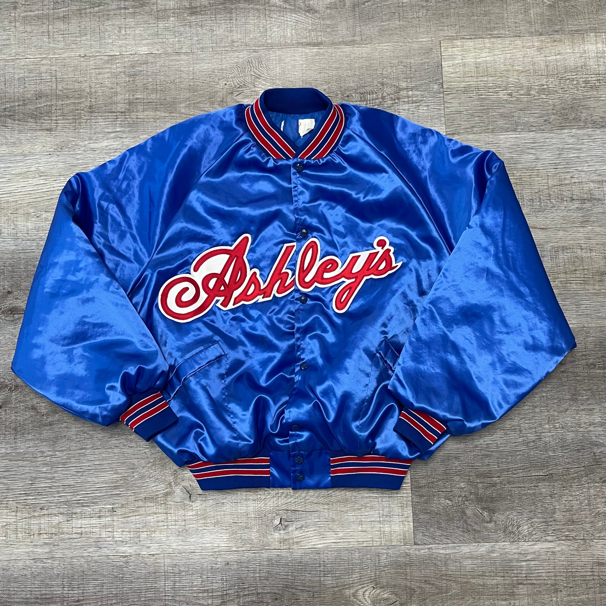 Discover a timeless piece with our Vintage 1990s Ashley's Night Club Satin Jacket. Crafted with high-quality satin material, this size XL jacket offers a luxurious and comfortable fit. Perfect for a night out, this jacket adds a touch of vintage elegance to any outfit. Own a piece of nostalgia today.