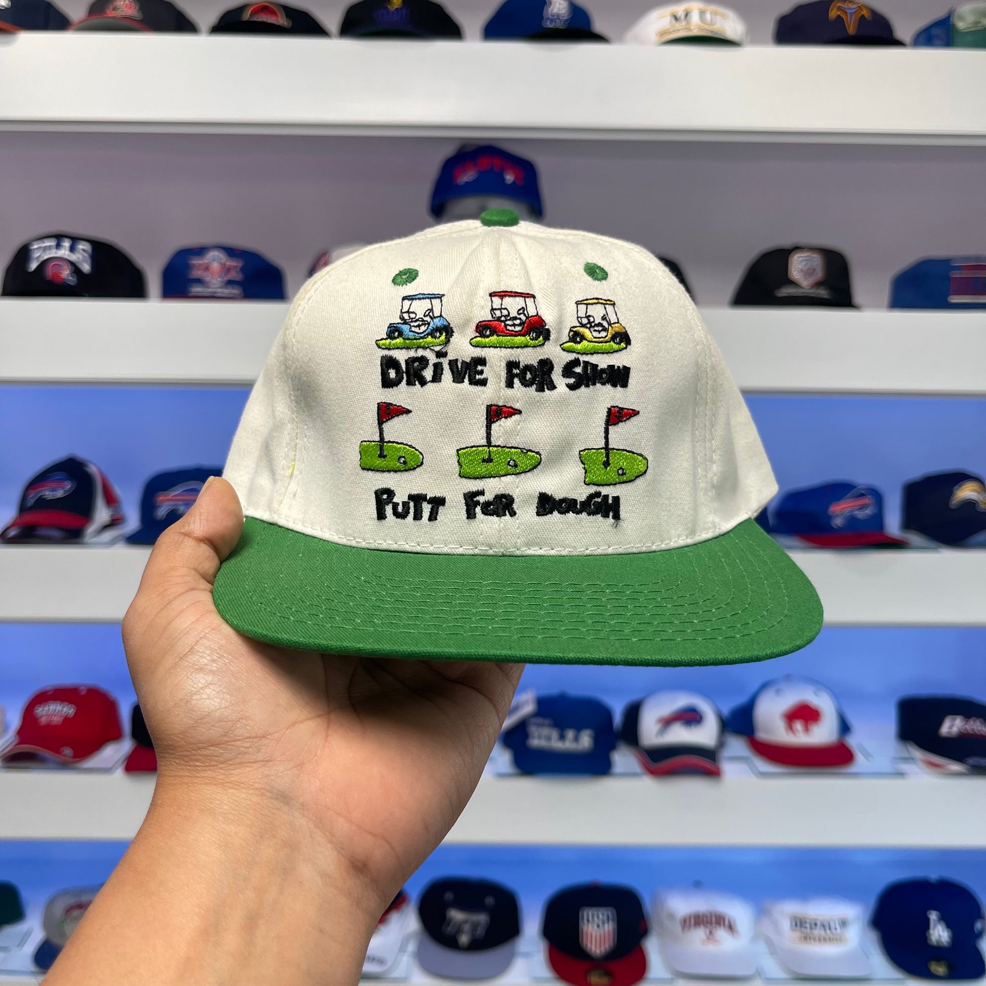 Enhance your vintage golf style with our Snap Back cap from the 1990s. Made with high-quality materials, this cap offers both fashion and functionality. With its adjustable fit and durability, it's perfect for both on and off the course. Add this unique piece to your collection today.