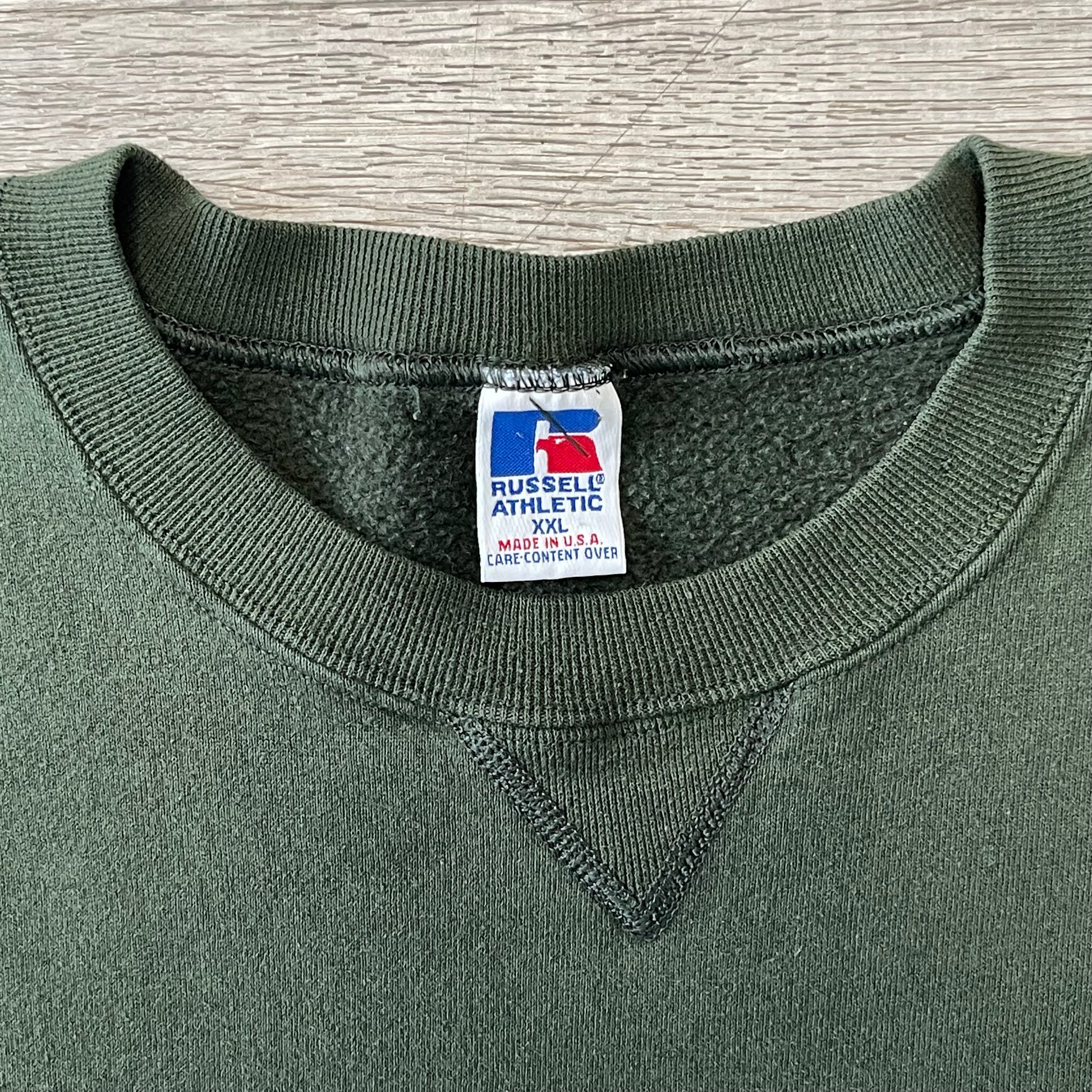 Introducing our Vintage USA Russell Athletic Sweatshirt in Size 2x. Made with high-quality materials, this sweatshirt boasts a classic vintage design and the trusted durability of the Russell Athletic brand. Perfect for adding a touch of retro style to your wardrobe.